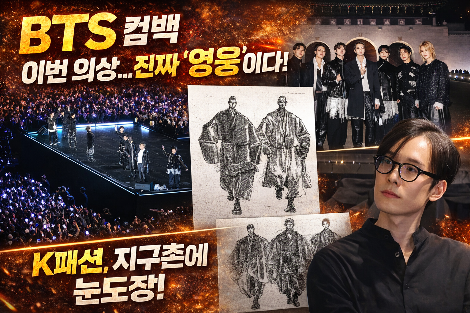 글로벌 슈퍼 그룹 방탄소년단(BTS)이 지난 21일 서울 광화문 광장에서 펼친 정규 5집 '아리랑(ARIRANG)' 컴백 무대는 전 세계 팬들을 열광시키기에 충분했습니다. 3년 9개월의 공백이 무색할 만큼 완벽한 무대 매너와 퍼포먼스는 물론, 이번 컴백의 또 다른 핵심은 바로 멤버들의 '의상'이었습니다.