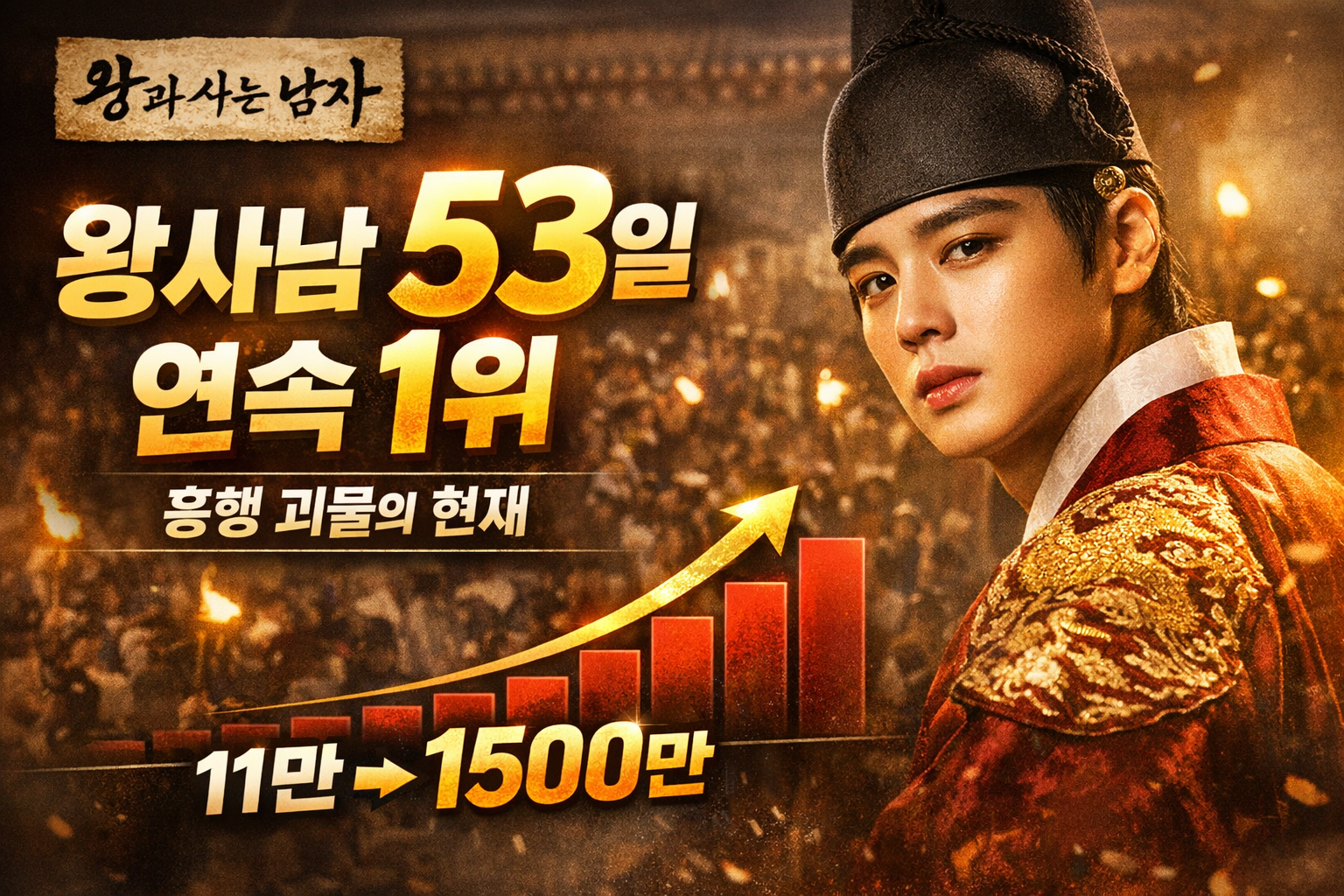 대한민국 영화계에 전례 없는 기록이 탄생했습니다. 영화 ‘왕과 사는 남자(이하 왕사남)’가 개봉 54일째에도 박스오피스 정상을 지키며 ‘왕사남, 53일 연속 1위 기록’이라는 대업을 달성했습니다. 극장가에서는 "도대체 언제까지 1위를 할 생각이냐"는 우스갯소리가 나올 정도로 흥행 기세가 꺾일 줄 모르고 있습니다.