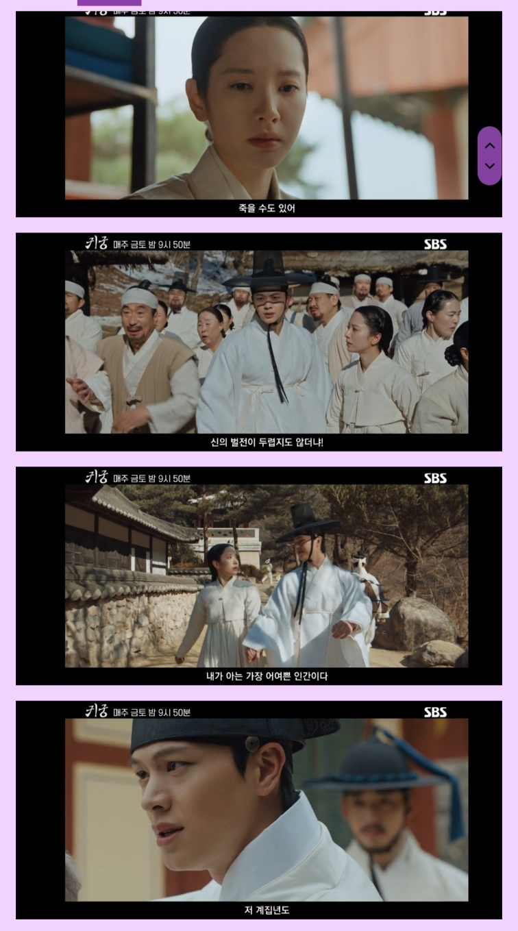 14회에서는 여리의 주도로 팔척귀를 봉인하기 위한 천도재가 진행됩니다. 그러나 의식 도중 팔척귀가 중전을 공격하며 대혼란이 발생합니다. 이 장면은 전통의식과 초자연적 존재가 충돌하는 극적 연출로 큰 인상을 남깁니다. 여리는 무녀의 지시를 따라 의식을 이어가려 하지만, 예기치 못한 공격으로 인해 의식은 중단되고, 여리는 깊은 자책에 빠집니다.