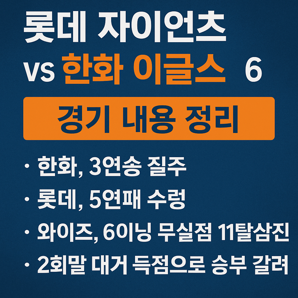 이번 경기는 한화 이글스가 왜 올 시즌 강력한 팀으로 평가받는지를 잘 보여준 경기였습니다. 와이스의 안정적인 선발 투구, 타선의 집중력, 그리고 수비에서의 집중도까지 모든 요소에서 롯데를 압도했습니다. 반면 롯데는 새 외국인 투수의 적응 실패와 타선의 부진이 겹치며 팀 전체적인 리듬을 잃은 모습입니다.