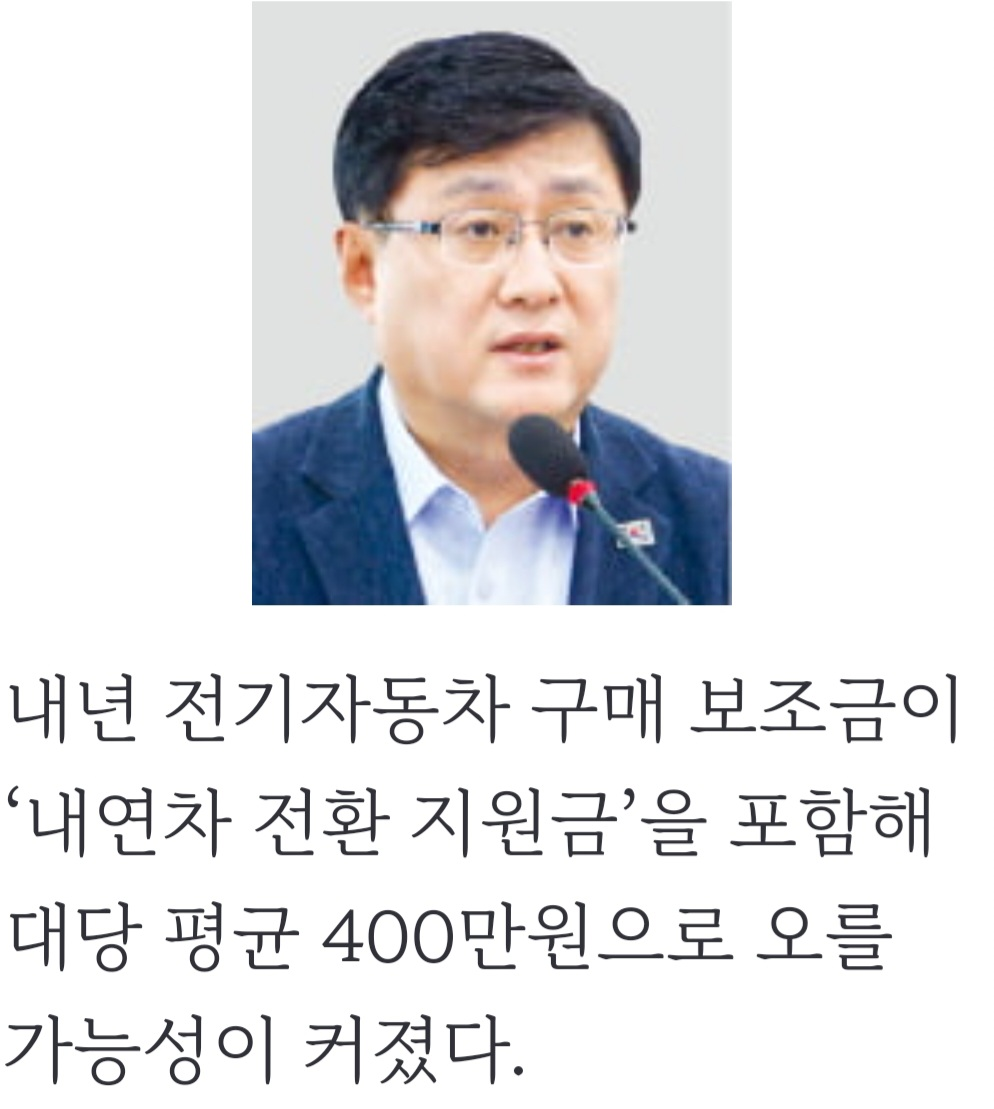 - 김성환 내년 전기차 보조금 300만→400만원 인상 검토