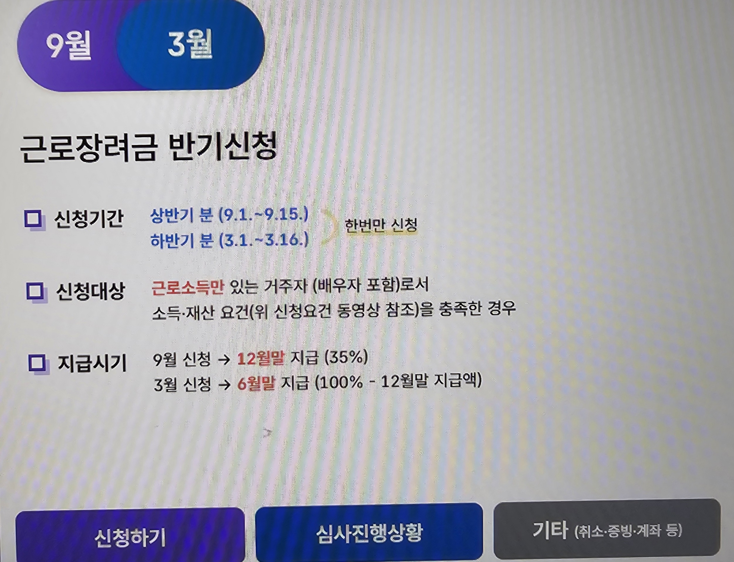 - 하반기 소득분: 2026년 3월 1일 ~ 3월 16일 신청, 정산 후 지급 예정 :