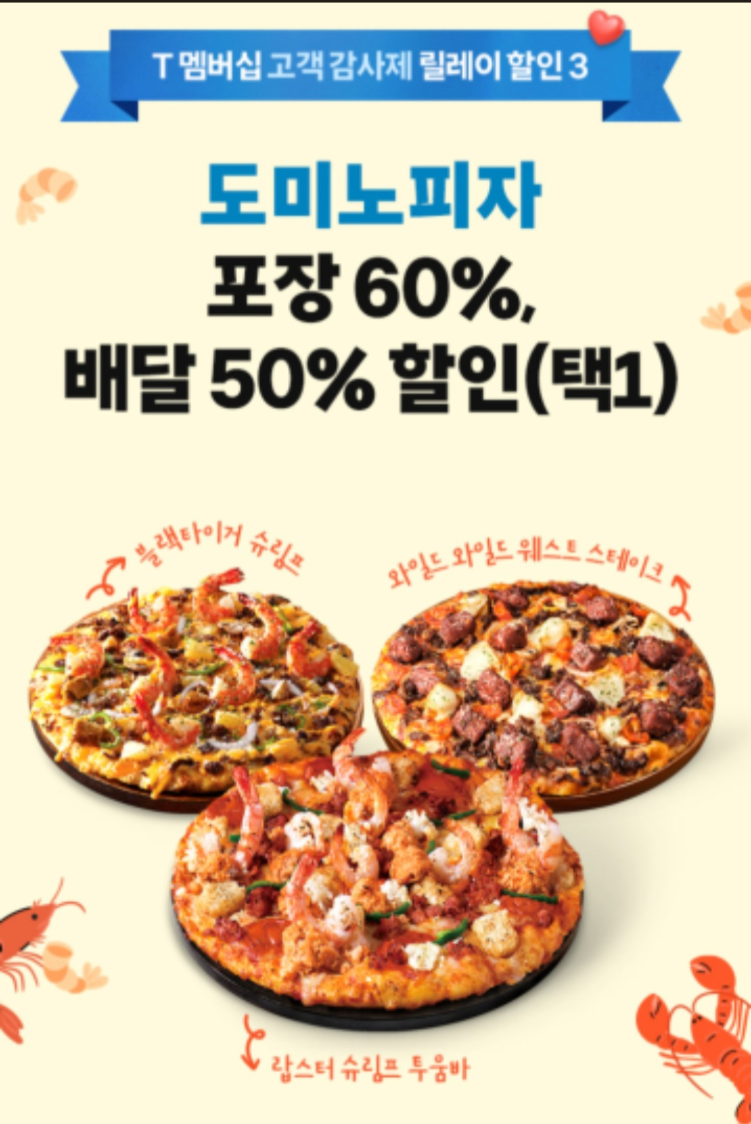 🍕도미노피자 SKT T멤버십 할인 이벤트 60~50%