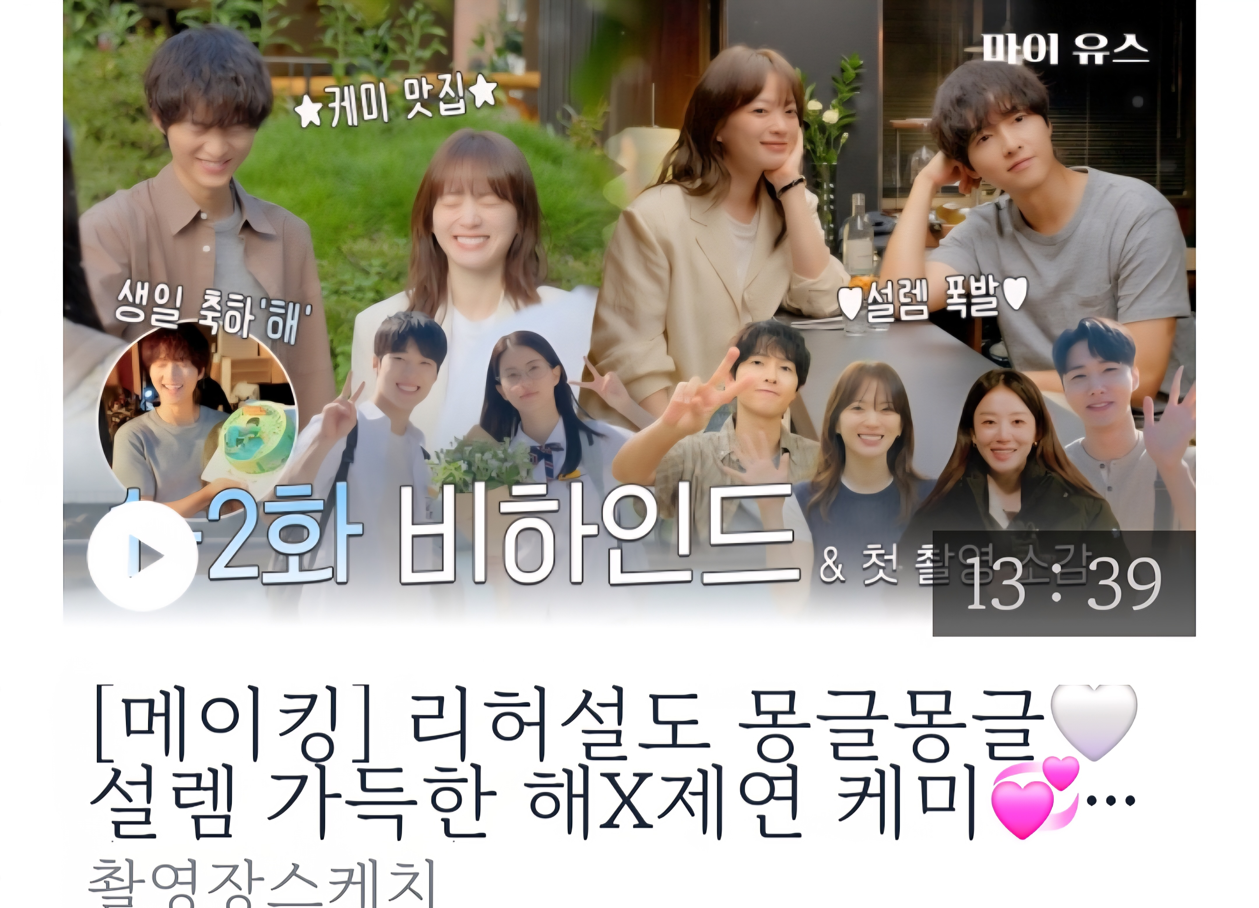| 선우해 | 송중기 | 첫사랑의 주인공 · 성찰/책임/평온 | 전직 아역 배우. 지금은 작가·플로리스트로 조용한 리듬을 지키려 한다. 재회로 미뤄 둔 질문과 마주한다. |