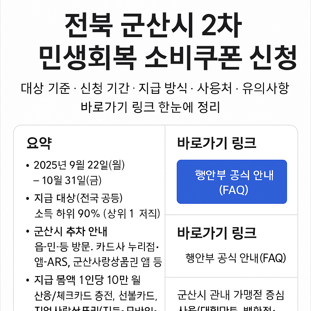본 안내는 공식 고지에 따른 요약입니다. 최종 기준·일정은 중앙정부·군산시 공지를 확인하세요.