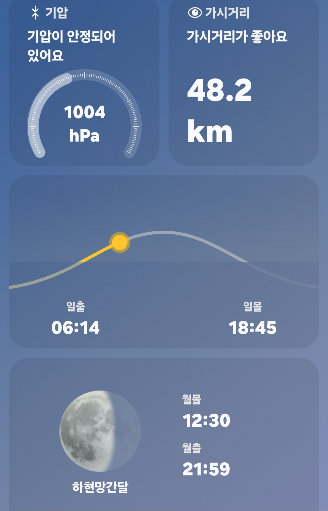 기온 21~24℃, 습도 80~95%. 비가 지나간 뒤에는 안개로 가시거리가 줄어듭니다. 창문만 열어두면 실내 습기가 쌓이니 제습/환기 병행을 권장합니다. 바람은 대체로 2~4 m/s로 약~약간 강 수준.