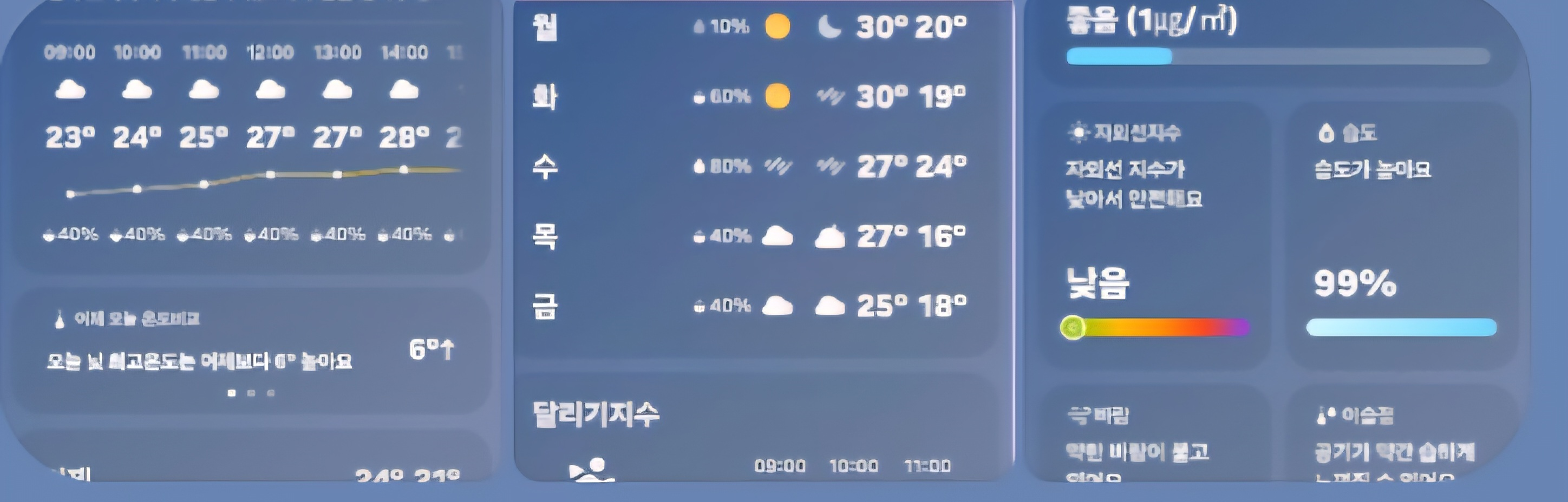 기온 최고 27~30 / 최저 21~23 구름 많음 시 체감 1~2℃↑