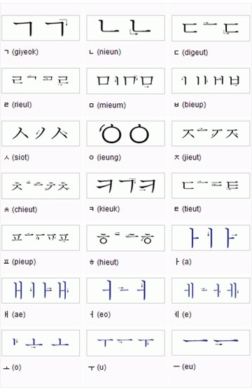 - 자음: 발음 기관의 모양을 본떠 만들었다. 예를 들어 ‘ㄱ’은 혀의 뿌리가 목구멍에 닿는 모양, ‘ㅁ’은 입술 모양을 형상화했다.