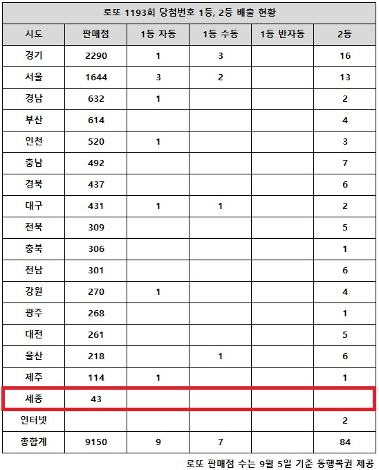 로또 1193회 당첨번호 1등 17억, 서울·경기 과반수 터졌다
