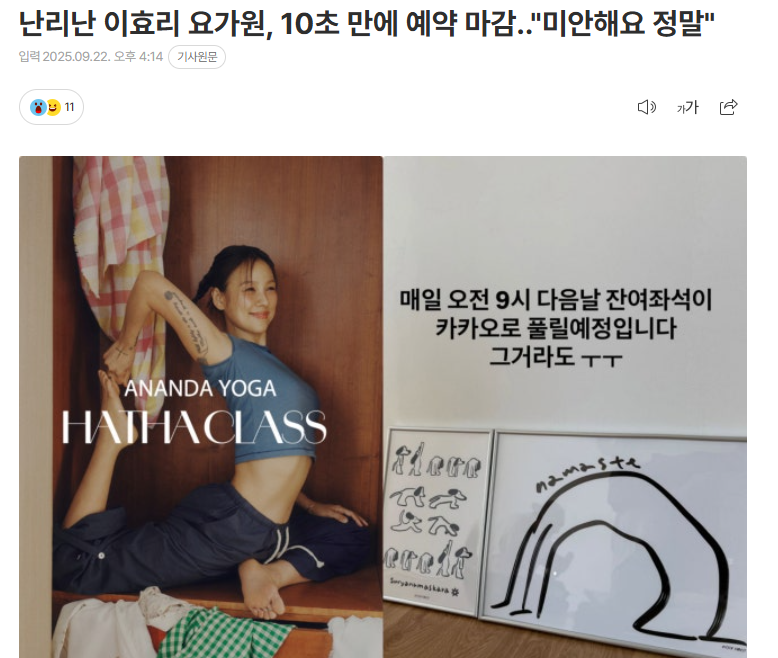 | 이효리 요가원 ‘아난다’, 수익 전액 기부! 선한 영향력의 기록 (1) | 2025.10.12 |