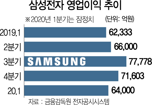 삼성전자는 2020년 4월 7일 잠정 실적 발표를 통해 매출 55조 원, 영업이익 6조 4,000억 원을 기록했다고 밝혔다. 이는 전년 동기 대비 매출 4.9%, 영업이익 2.7% 증가한 수치로, 코로나19로 인해 전 세계 산업이 흔들리던 시기임을 감안하면 선방한 실적이다. 당초 시장에서는 삼성전자의 영업이익을 5조 원대 후반으로 예상했으나, 예상을 상회하며 주목받았다.
