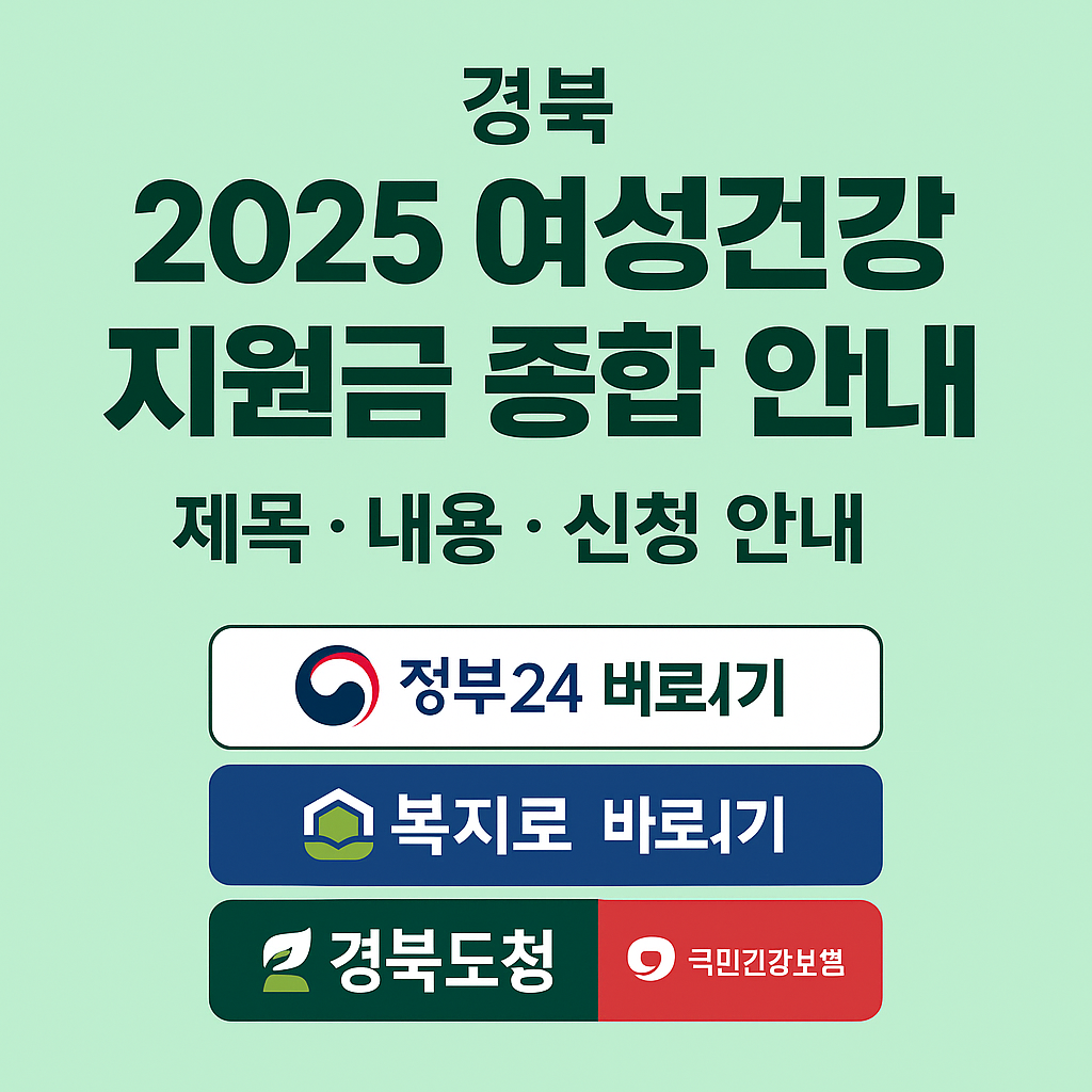 경상북도 내 거주 여성의 생애주기별 건강 관리를 위해 마련된 재정 지원 제도에 대한 종합 안내이다. 생리용품 구입, 성건강 상담, 예방접종, 국가암검진 연계, 난임 검사 및 시술 보조, 임신·출산·산후 관리, 골다공증 검사 등 생활 밀착형 항목으로 구성된다. 중앙정부 공동 사업과 경상북도 자체 사업이 병행되며, 실제 지급 항목과 한도는 시·군 공고에 의해 조정된다.