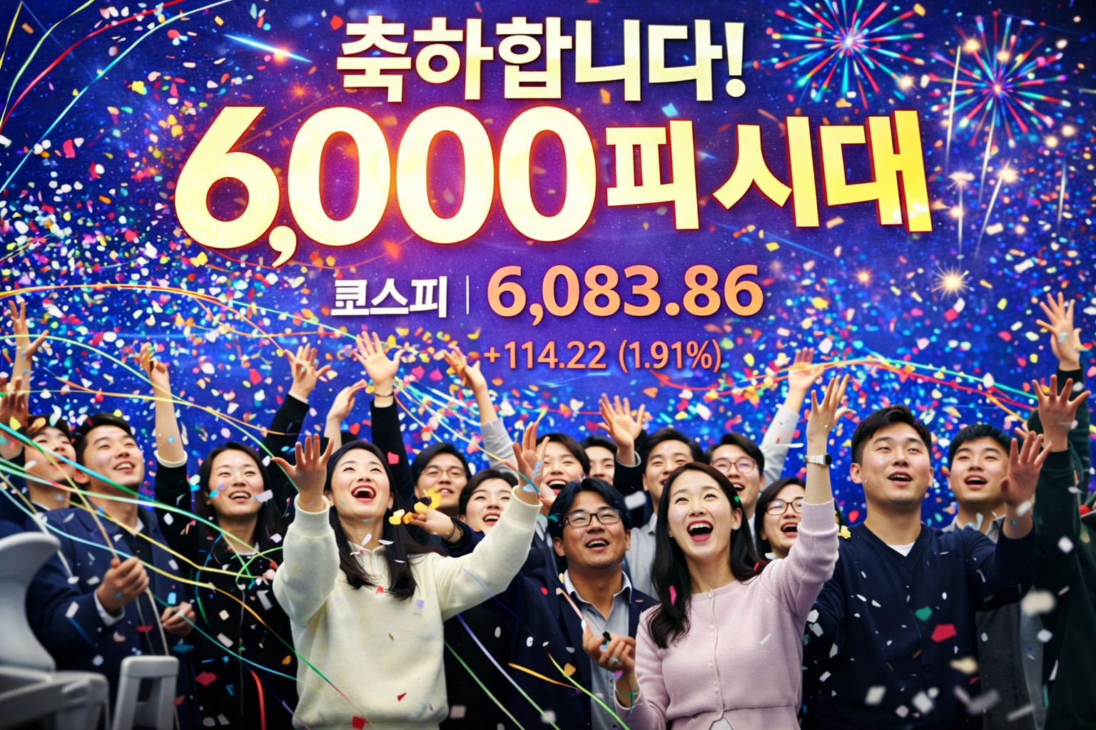 "꿈의 숫자 6000 돌파!" 코스피 6083.86 마감, 대한민국 자본시장 새 역사 썼다