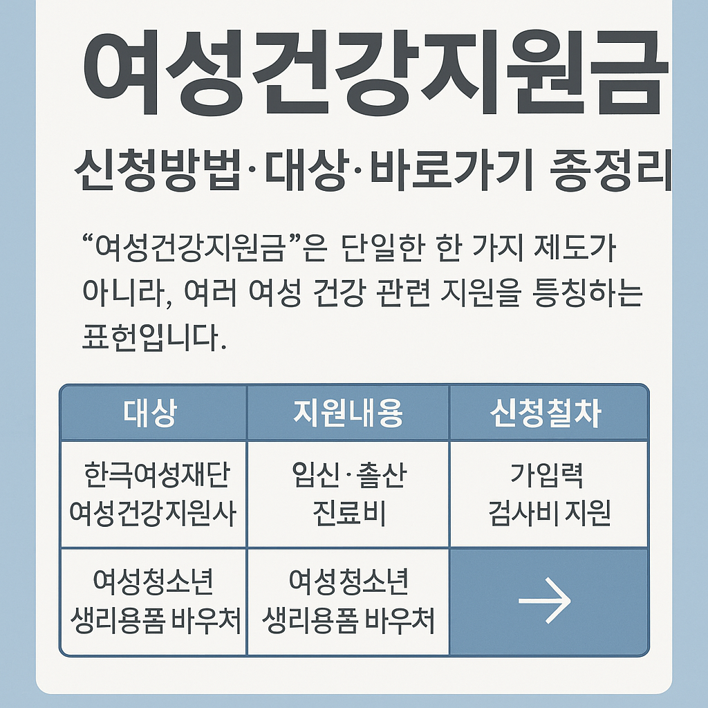 최근 여성의 건강 문제가 사회적 화두로 떠오르면서, 단순한 의료비 보조를 넘어 예방·검진·생리용품·출산 전후 관리까지 아우르는 지원으로 확대되고 있습니다. 경제적 여건에 따라 건강관리를 미루는 여성을 줄이기 위한 취지이기도 합니다.