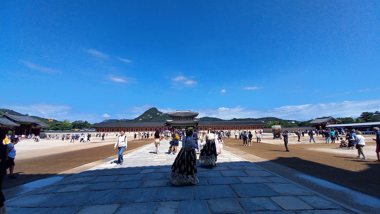 입구를 통과하며 고개를 들자, 근정전의 기와가 가을 햇살에 번쩍 빛났습니다. 발 아래 돌길 사이로 그림자가 길게 드리워지고, 하늘은 맑고 투명했습니다. 그 순간, 복잡한 인파 속에서도 이상하게 마음이 평화로웠습니다. 사람들의 발걸음이 리듬을 만들고, 웃음소리가 멜로디가 되어 경복궁 전체가 하나의 거대한 명절 노래처럼 울리고 있었습니다.