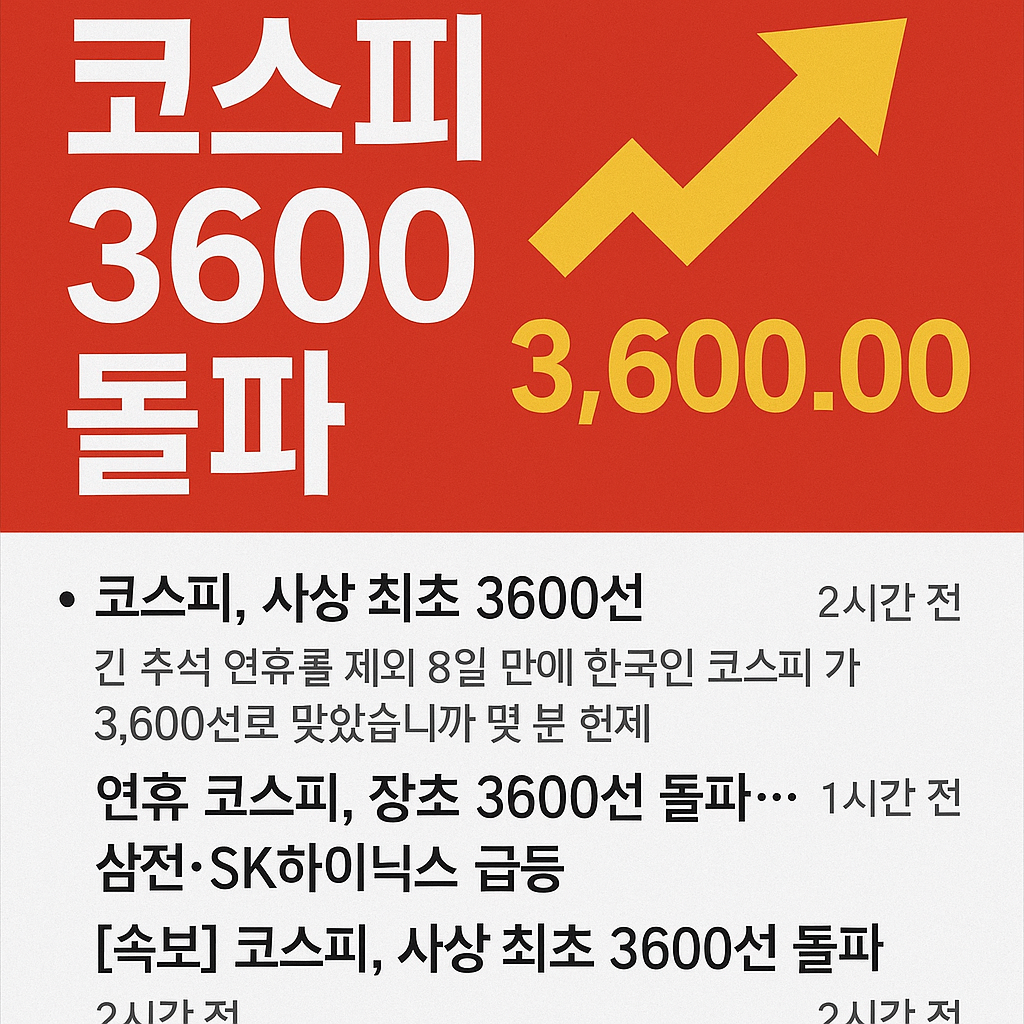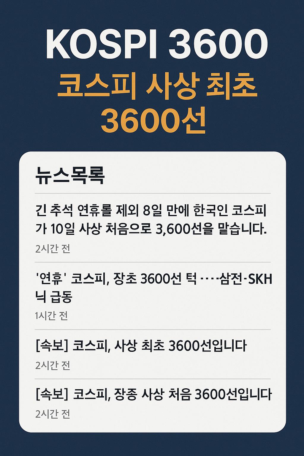 코스피, 사상 최초 3,600선 돌파… 반도체·대형주 주도